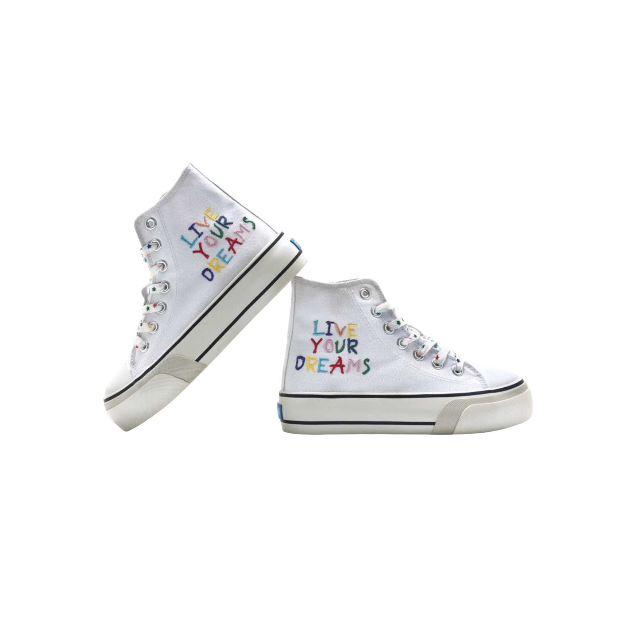 Zapatillas abotinadas de lona con mensaje bordado en el lateral.