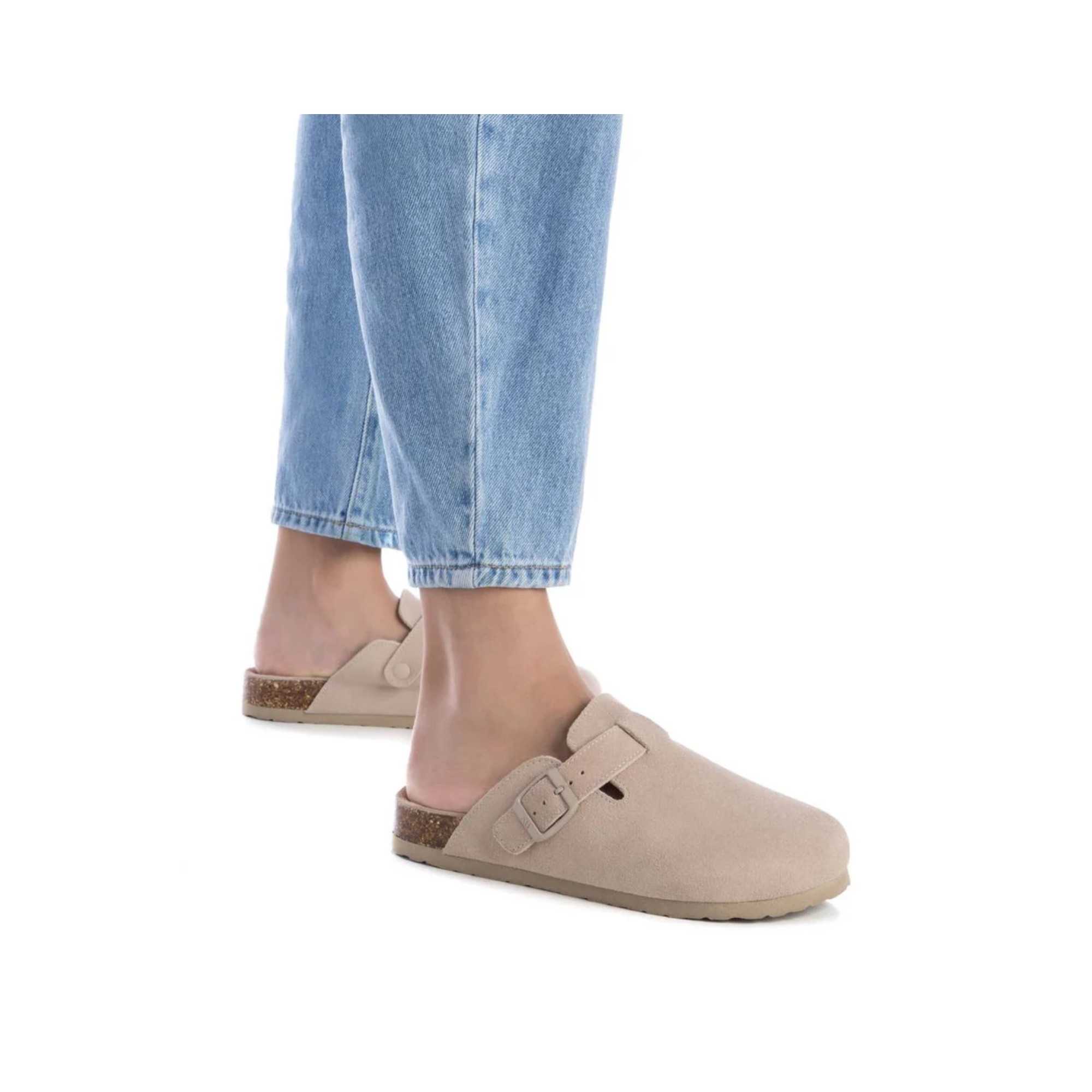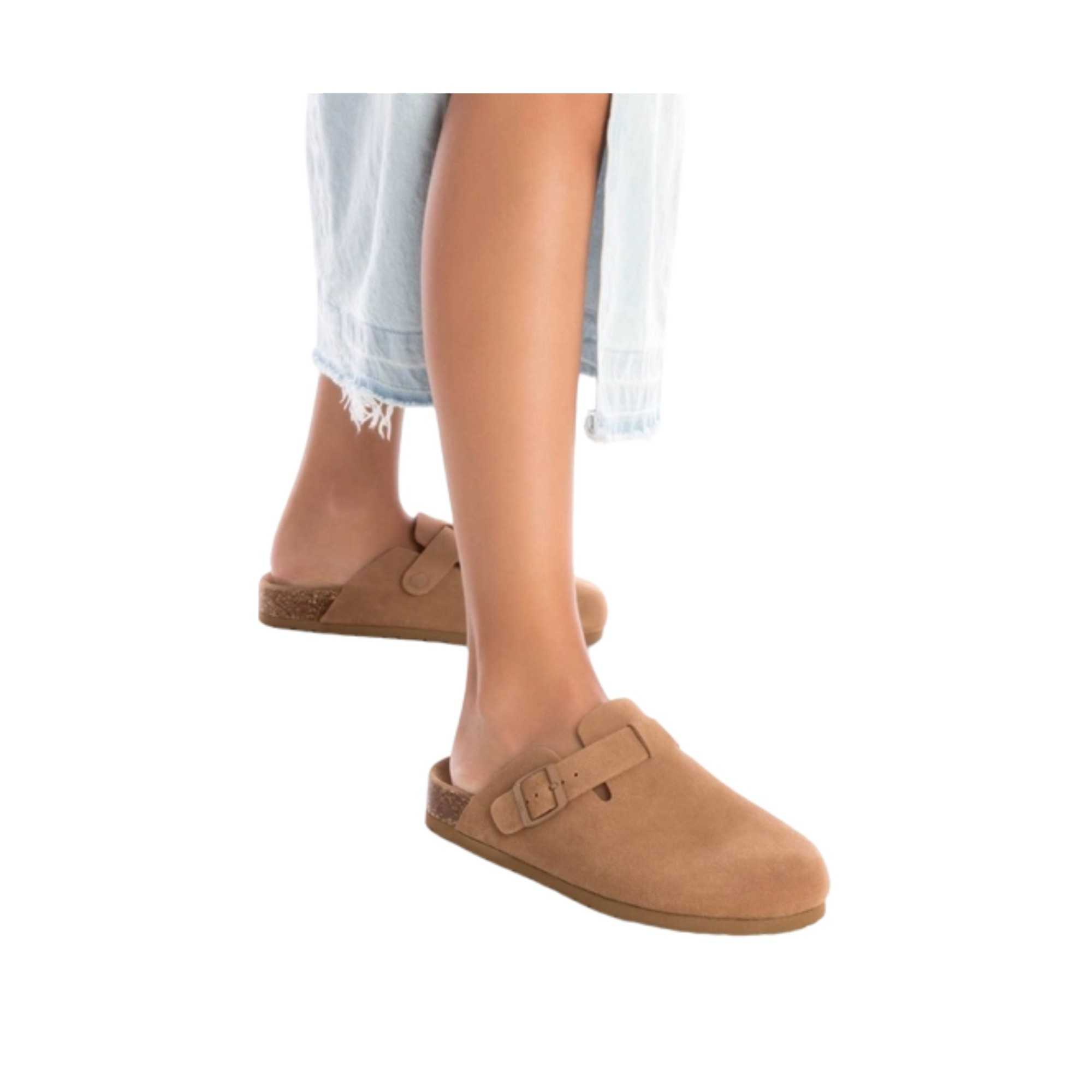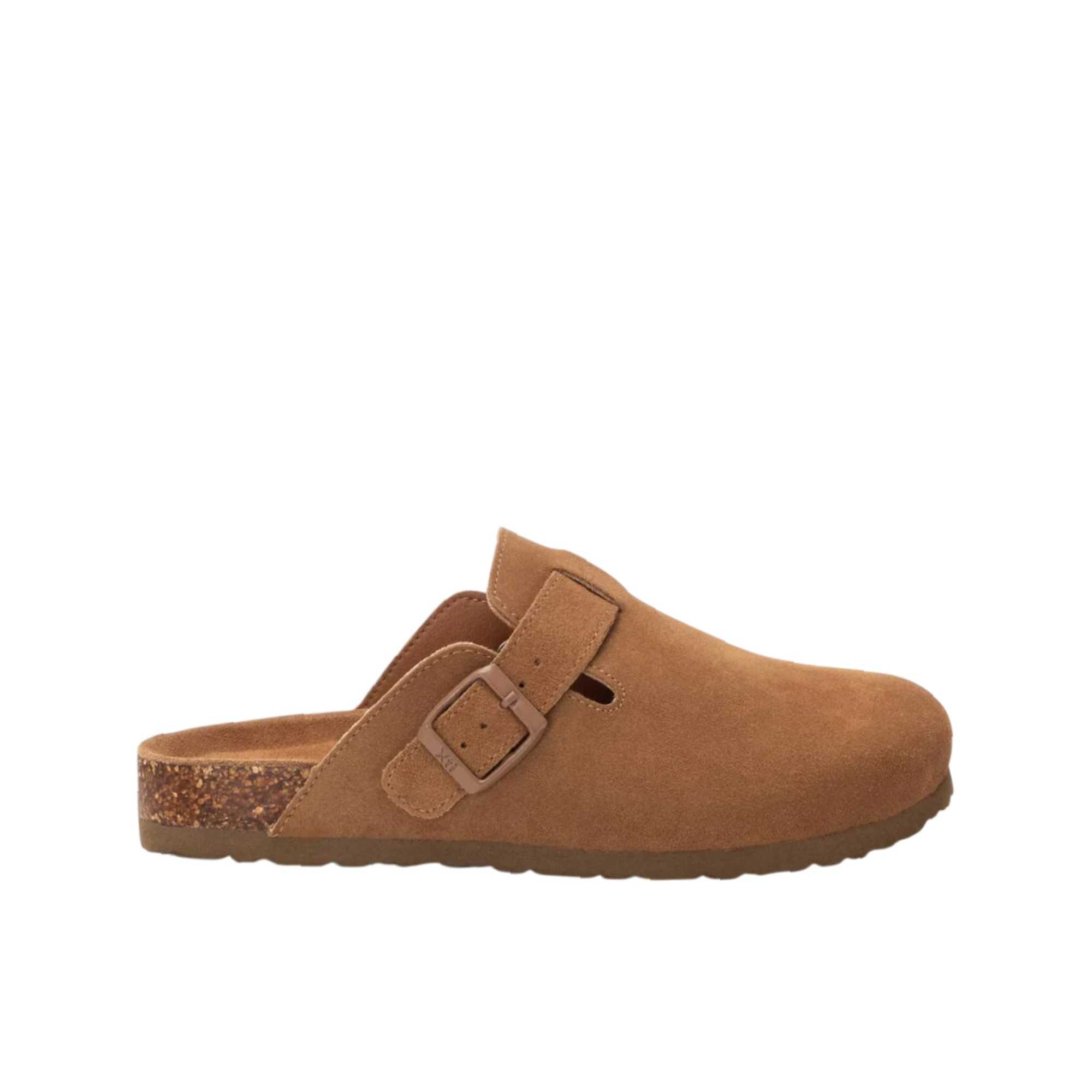 Zuecos planos con hebilla ajustable al empeine.